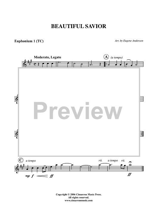 Digital Sheet Music for Beautiful Savior - Euphonium 1 BC/TC by Eugene Anderson scored for Tuba Quartet; id:356566