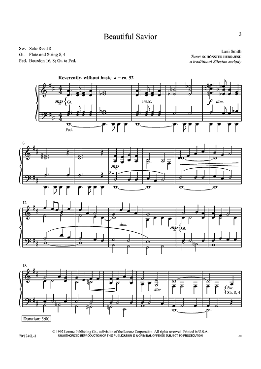 Digital Sheet Music for Beautiful Savior by , Lani Smith, Traditional Silesian melody scored for Organ Solo; id:434723