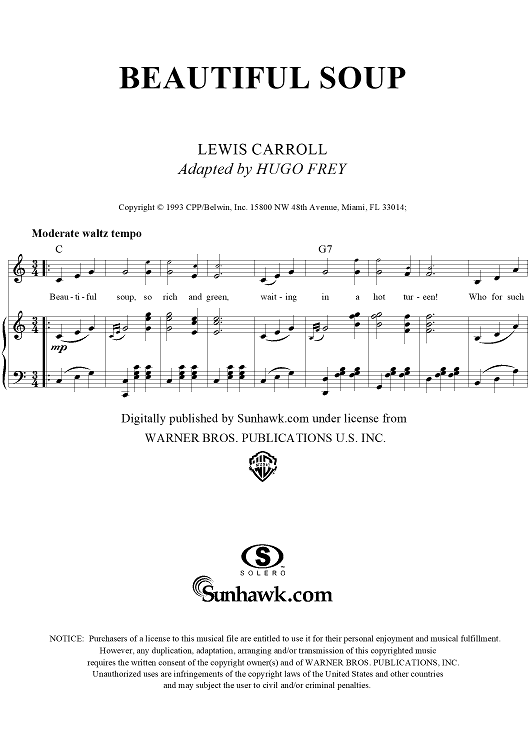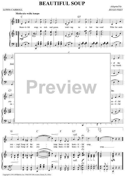 Digital Sheet Music for Beautiful Soup by Hugo Frey, Lewis Carroll scored for Piano/Vocal/Chords; id:273462