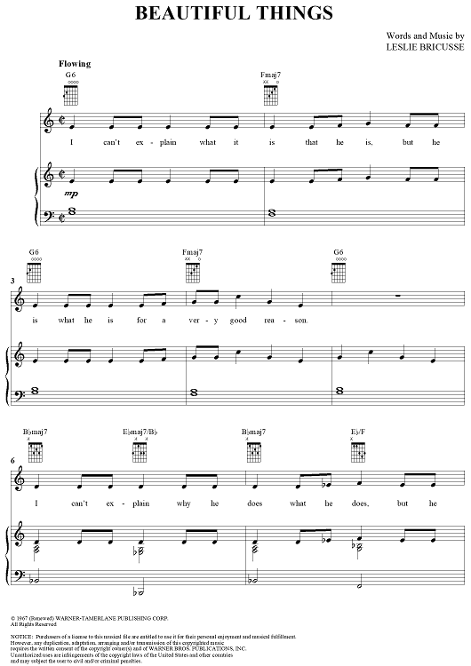 "Beautiful Things" Sheet Music by Leslie Bricusse