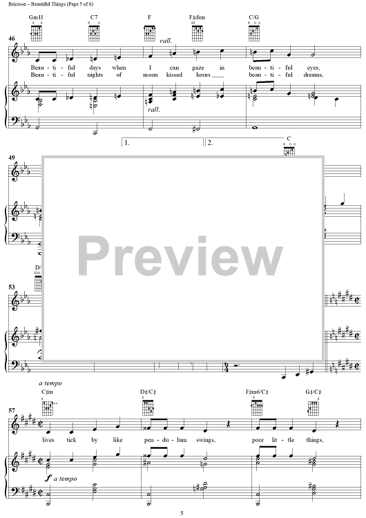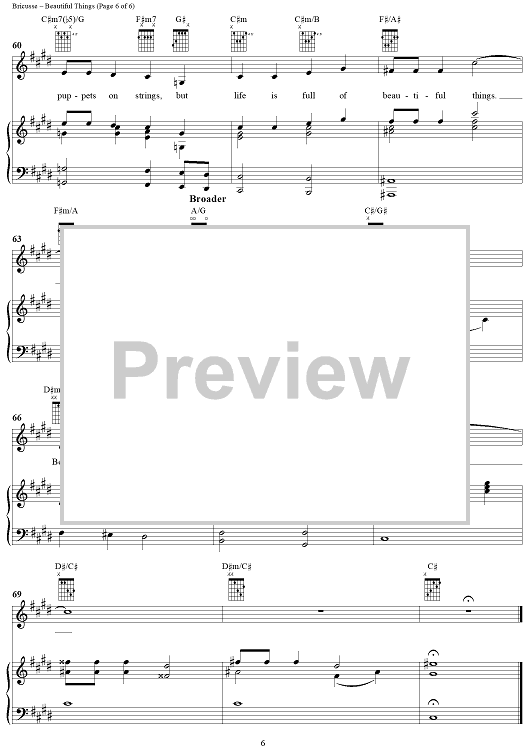 Digital Sheet Music for Beautiful Things by Leslie Bricusse scored for Piano/Vocal/Chords; id:362822