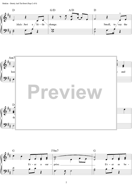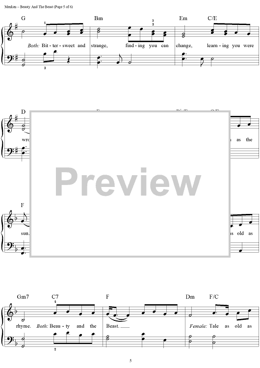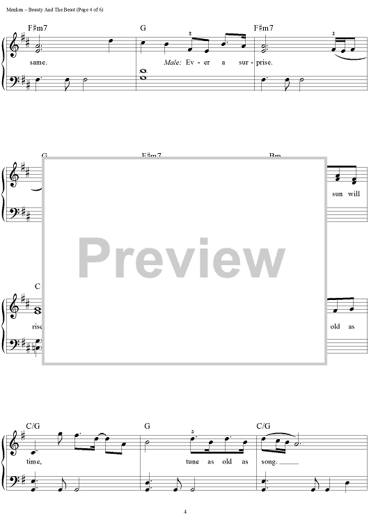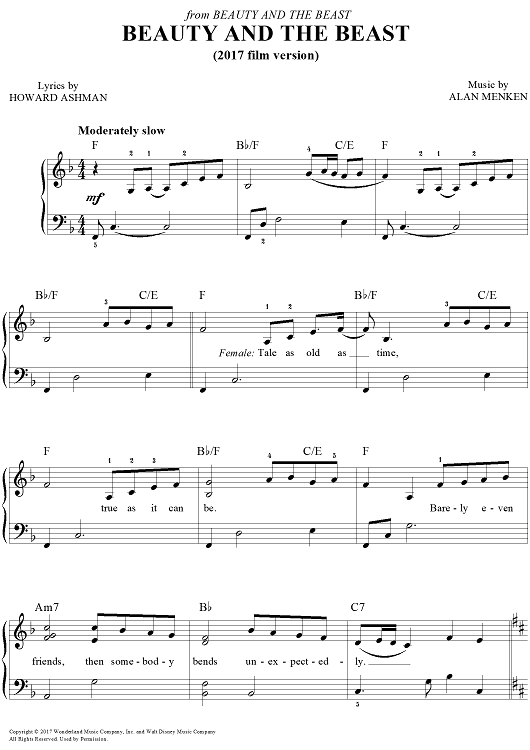 Digital Sheet Music for Beauty And The Beast (2017 film version) by Alan Menken, Howard Ashman scored for Easy Piano/Vocal/Chords; id:464133