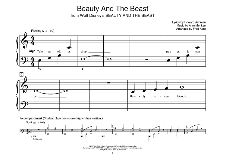 Digital Sheet Music for Beauty And The Beast by Alan Menken, Howard Ashman, Fred Kern scored for Piano; id:385298
