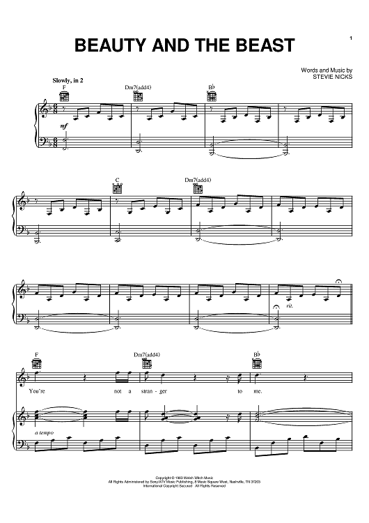 Digital Sheet Music for Beauty And The Beast by Stevie Nicks scored for Piano/Vocal/Chords; id:397759