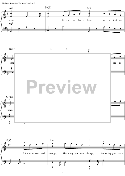 Digital Sheet Music for Beauty and the Beast by Alan Menken, Howard Ashman scored for Easy Piano/Vocal/Chords; id:448457