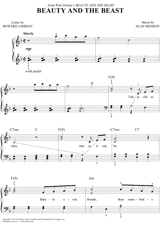 "Beauty and the Beast" Sheet Music by Alan Menken