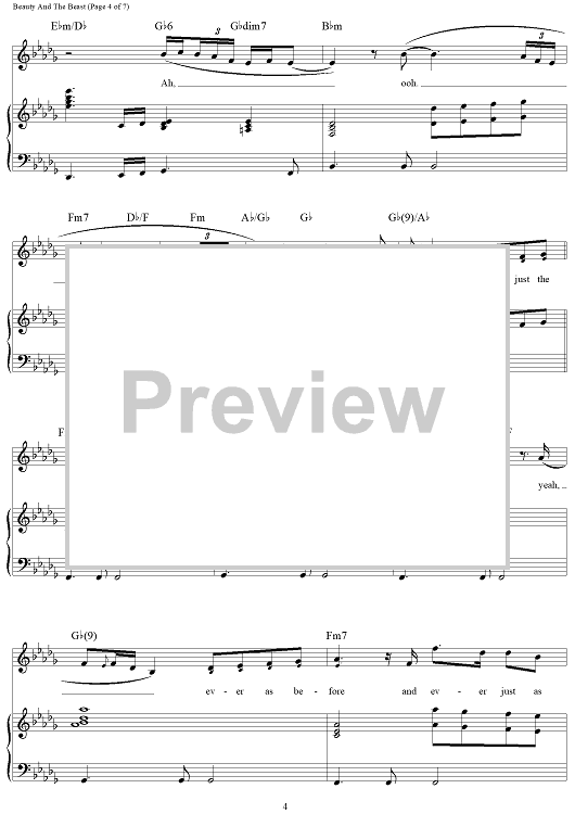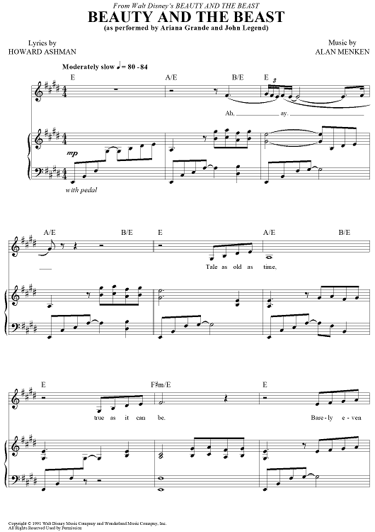 Digital Sheet Music for Beauty And The Beast by Alan Menken, Howard Ashman, John Legend, Ariana Grande scored for Piano/Vocal/Chords; id:469016