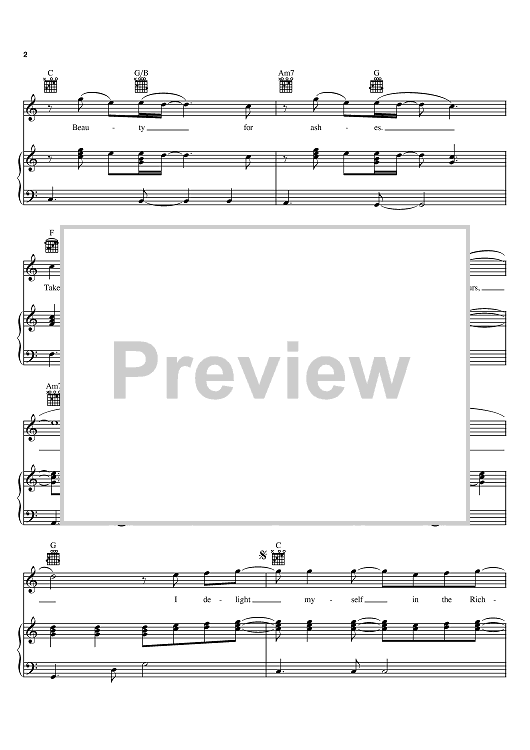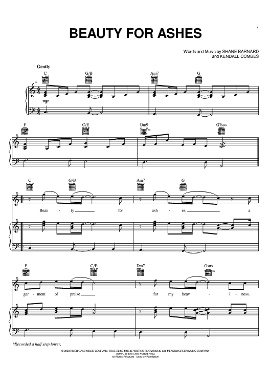 Digital Sheet Music for Beauty For Ashes by Shane Barnard, Shane and Shane, Kendall Combes scored for Piano/Vocal/Chords; id:381577
