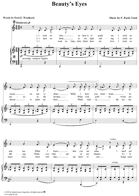 Digital Sheet Music for Beauty's Eyes by Francesco Paolo Tosti, Frederic Weatherly scored for SATB or Piano/Vocal; id:275039