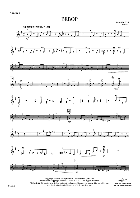 "Bebop - Violin 2" Sheet Music by Bob Lipton