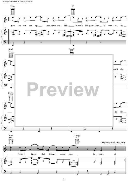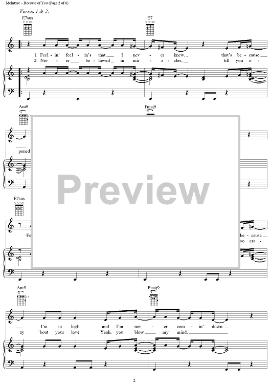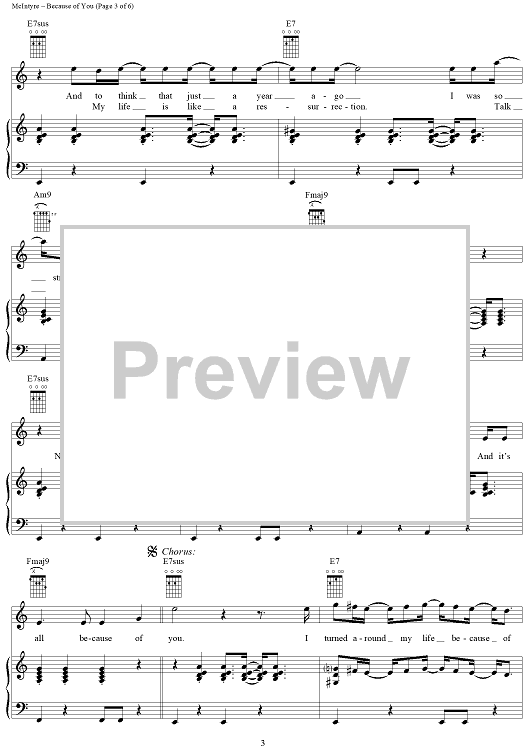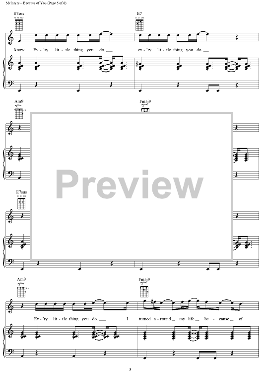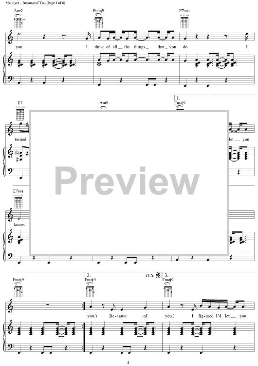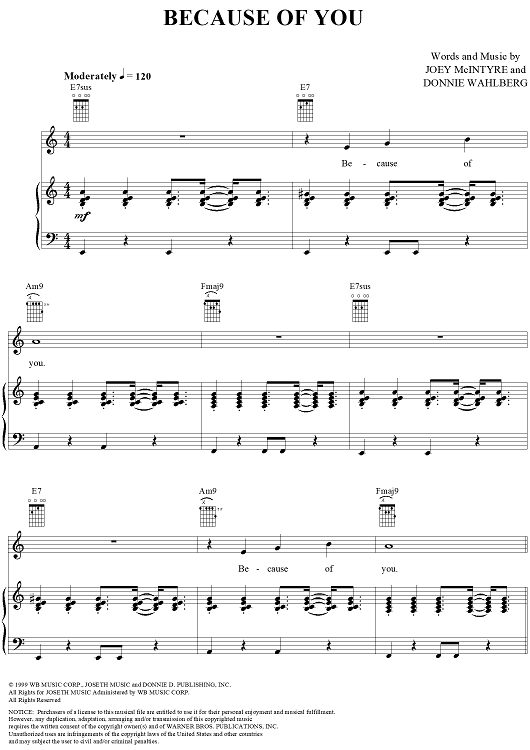 Digital Sheet Music for Because of You by Joey McIntyre, Donnie Wahlberg scored for Piano/Vocal/Chords; id:241155