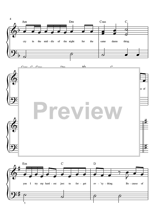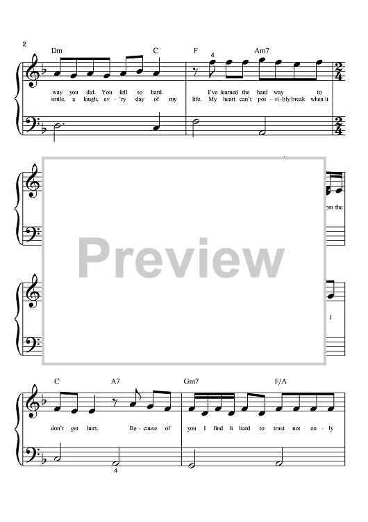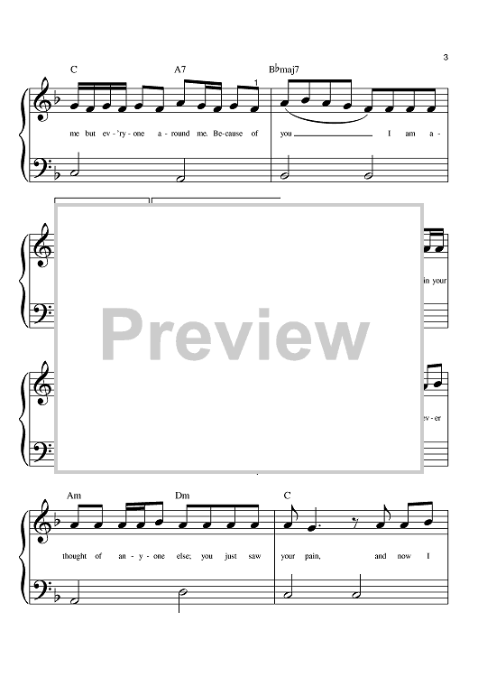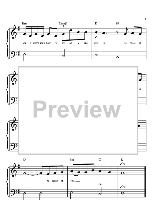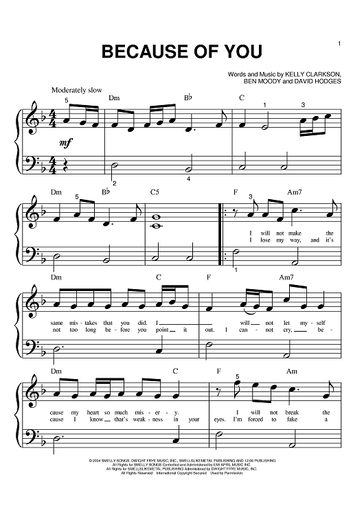 Digital Sheet Music for Because Of You by Ben Moody, David Hodges, Kelly Clarkson scored for Big Note Piano; id:392341