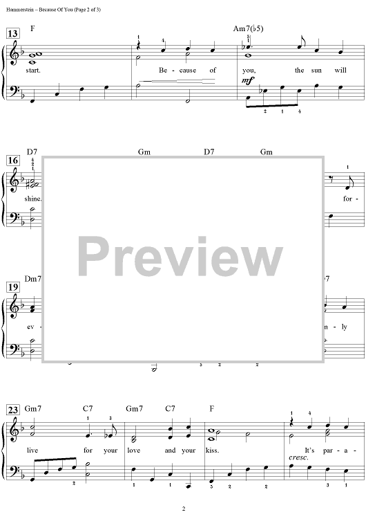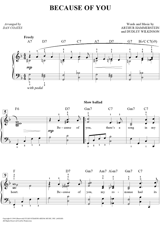 Digital Sheet Music for Because of You by Dan Coates, Dudley Wilkinson, Arthur Hammerstein scored for Easy Piano/Vocal/Chords; id:457280