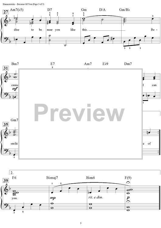 "Because of You" Sheet Music by Dudley Wilkinson