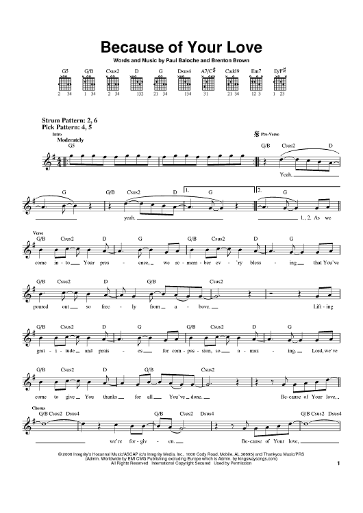 Digital Sheet Music for Because Of Your Love by Paul Baloche, Brenton Brown scored for Easy Guitar; id:398255