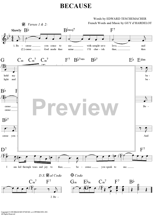 Digital Sheet Music for Because by Guy d'Hardelot, Edward Teschemacher scored for Lead Sheet; id:271716