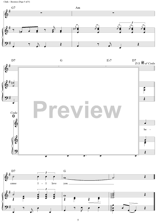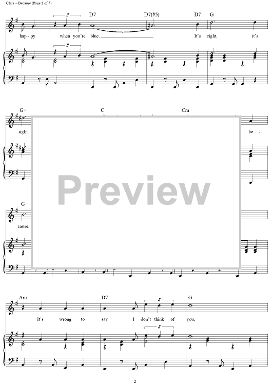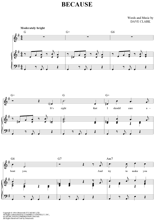 Digital Sheet Music for Because by The Dave Clark Five, Dave Clark scored for Piano/Vocal/Chords; id:453974