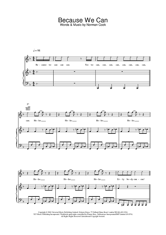 Digital Sheet Music for Because We Can by Fatboy Slim scored for Piano/Vocal/Chords; id:380119