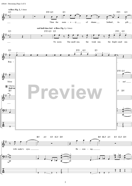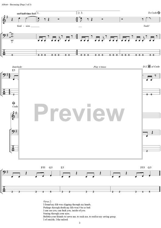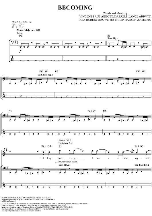 Digital Sheet Music for Becoming by Rex Brown, Dimebag Darrell, Phil Anselmo, Pantera, Vinnie Paul scored for Bass Tab/Vocal; id:234972