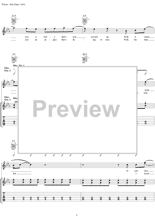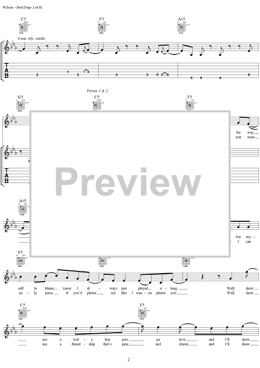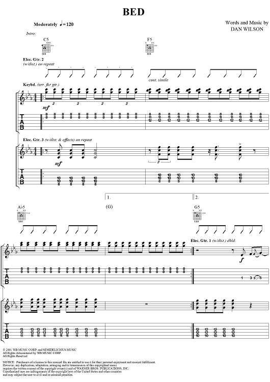 Digital Sheet Music for Bed by Semisonic, Dan Wilson scored for Guitar Tab/Vocal; id:285282