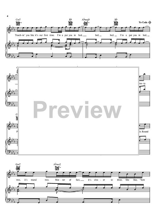 Digital Sheet Music for Bed by Carlos McKinney, J. Holiday, Terius Nash scored for Piano/Vocal/Chords; id:401159