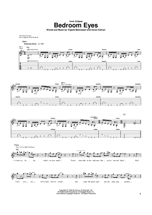 "Bedroom Eyes" Sheet Music by Yngwie Malmsteen