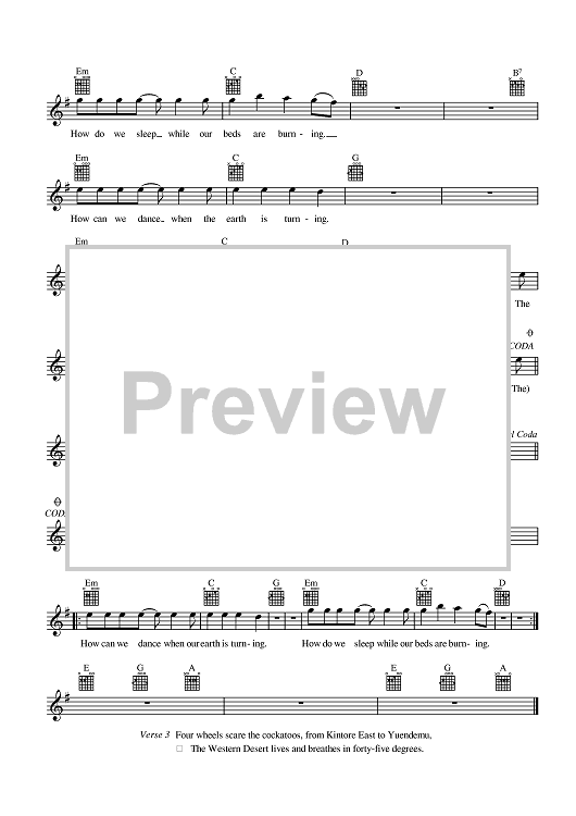 Digital Sheet Music for Beds Are Burning by Peter Garrett, Robert Hirst, Midnight Oil, James Moginie scored for Lead Sheet; id:401671