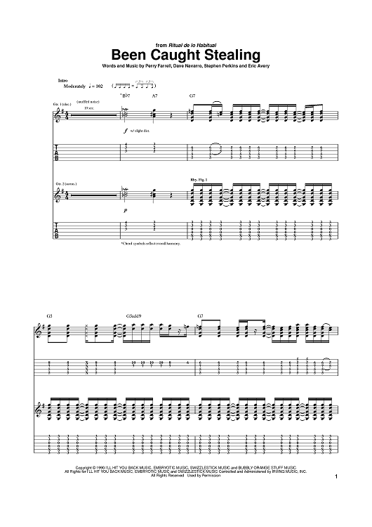 Digital Sheet Music for Been Caught Stealing by Perry Farrell, Jane's Addiction, Dave Navarro, Stephen Perkins scored for Guitar Tab; id:373660