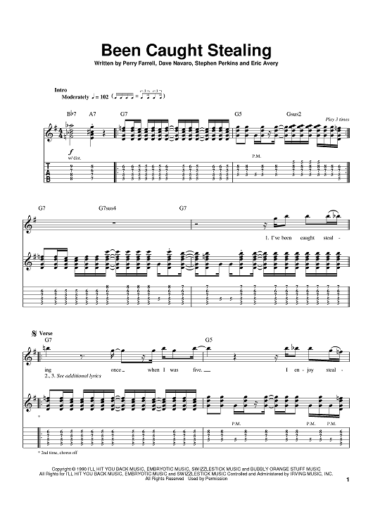 Digital Sheet Music for Been Caught Stealing by Jane's Addiction scored for Guitar Tab; id:401555