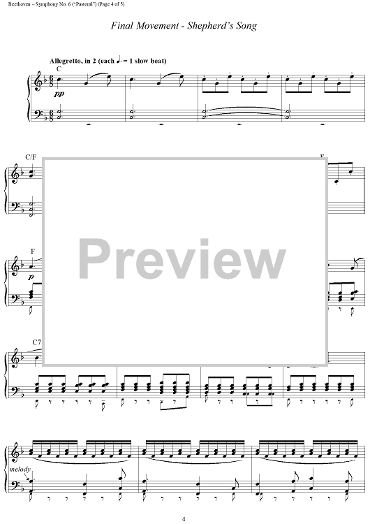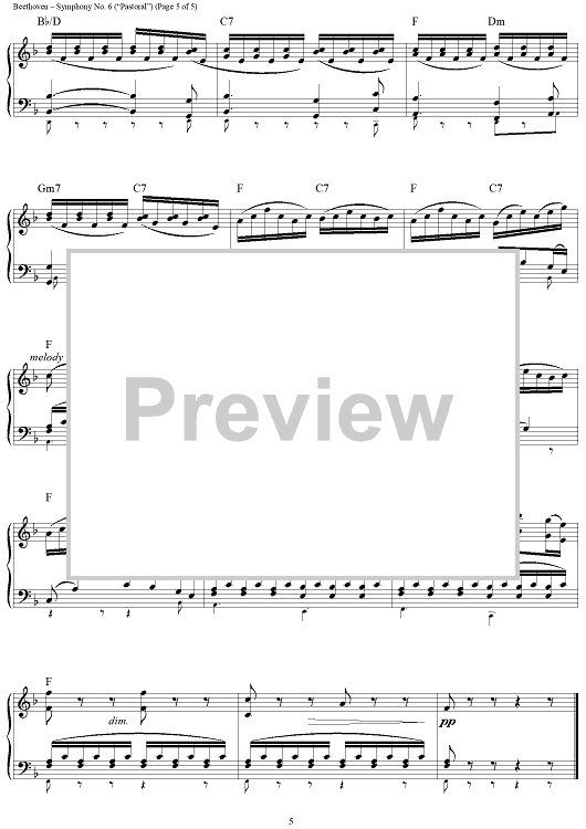 Digital Sheet Music for Beethoven: Symphony 6 ("Pastoral") by Ludwig van Beethoven scored for Easy Piano/Chords; id:434744