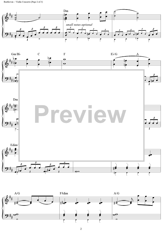 Digital Sheet Music for Beethoven: Violin Concerto - First Movement-Second Theme by Ludwig van Beethoven scored for Easy Piano/Chords; id:437849