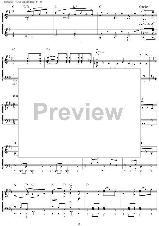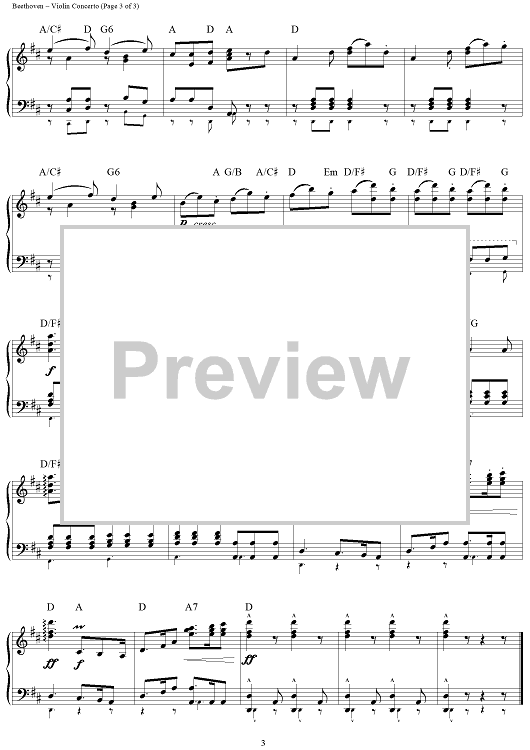 Digital Sheet Music for Beethoven: Violin Concerto - Second and Third Movement Theme by Ludwig van Beethoven scored for Easy Piano/Chords; id:437848
