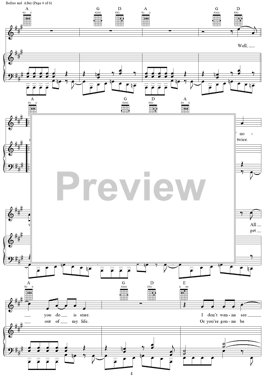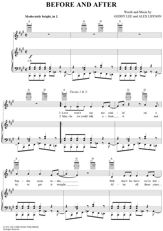 Digital Sheet Music for Before And After by Rush, Geddy Lee, Alex Lifeson scored for Piano/Vocal/Chords; id:250623