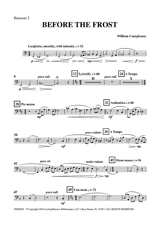 Digital Sheet Music for Before the Frost - Bassoon 2 by William Camphouse scored for Full Orchestra; id:461980