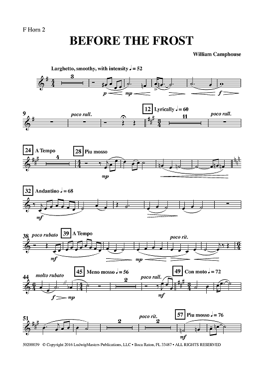 Digital Sheet Music for Before the Frost - Horn 2 in F by William Camphouse scored for Full Orchestra; id:461982