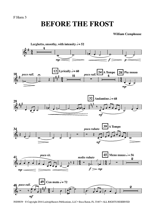 Digital Sheet Music for Before the Frost - Horn 3 in F by William Camphouse scored for Full Orchestra; id:461983