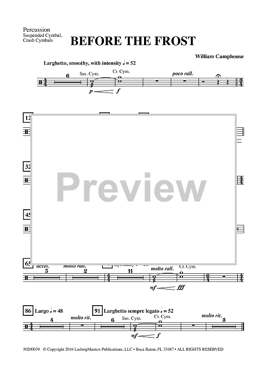 Digital Sheet Music for Before the Frost - Percussion by William Camphouse scored for Full Orchestra; id:461993