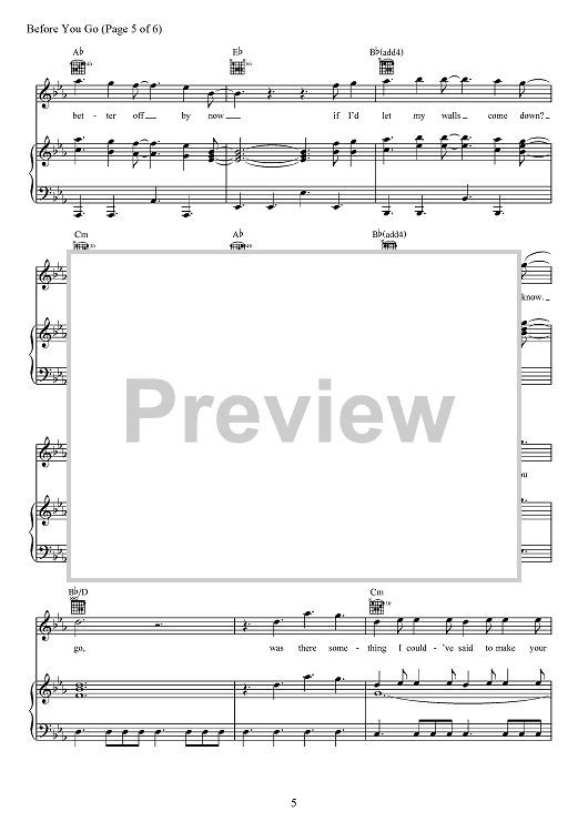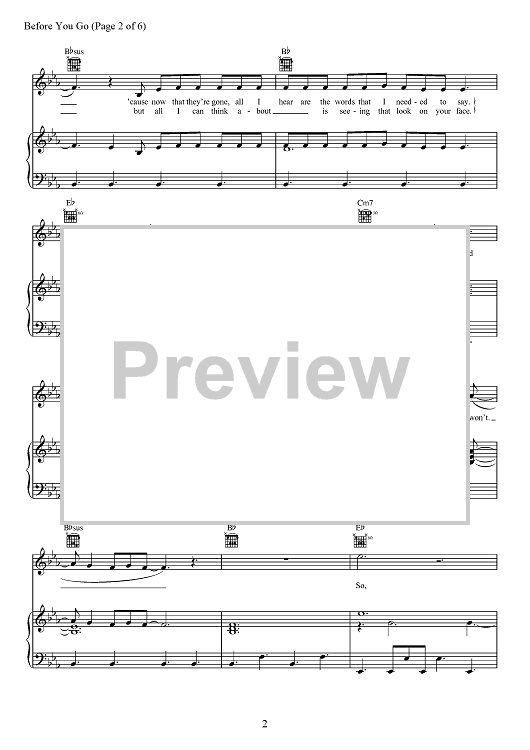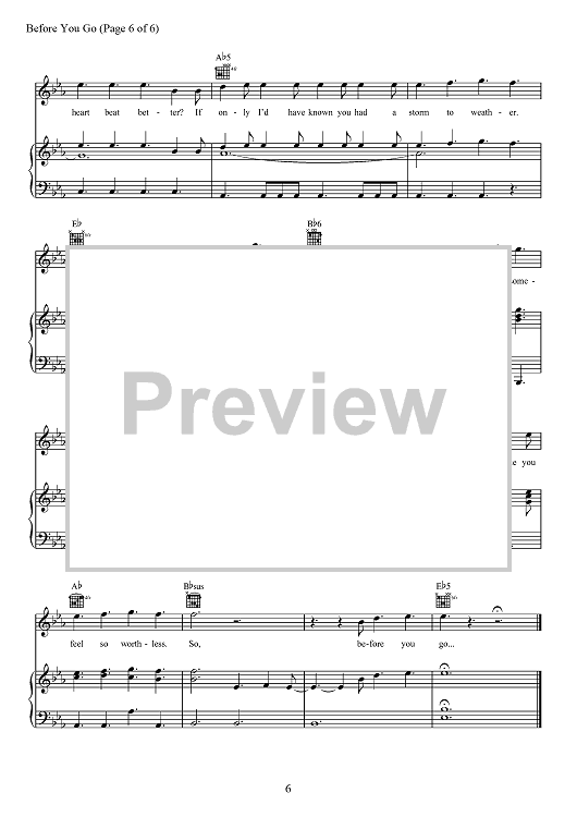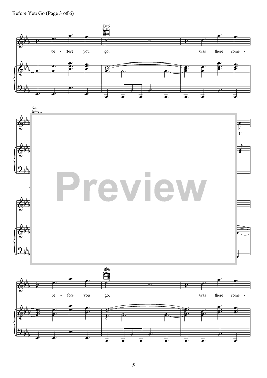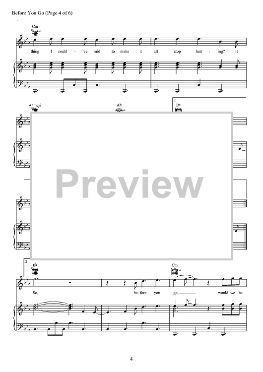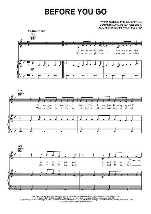 Digital Sheet Music for Before You Go by Peter Kelleher, Ben Kohn, Tom Barnes, Lewis Capaldi, Philip Plested scored for Piano/Vocal/Chords; id:467911
