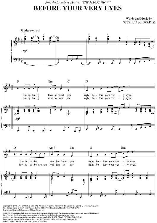 Digital Sheet Music for Before Your Very Eyes by Stephen Schwartz, Doug Henning scored for Piano/Vocal/Chords; id:356252