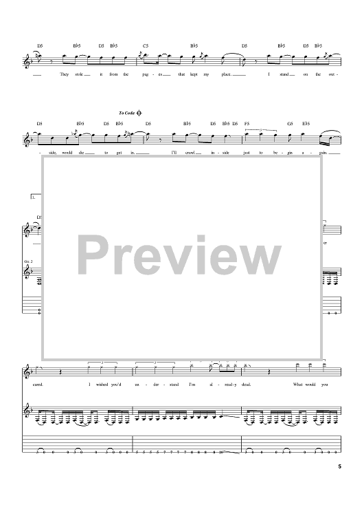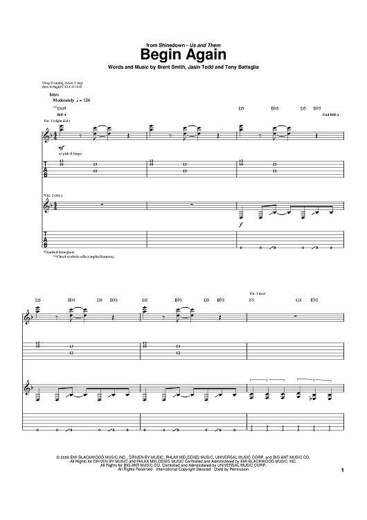 Digital Sheet Music for Begin Again by Tony Battaglia, Shinedown, Brent Smith, Jasin Todd scored for Guitar Tab; id:392353