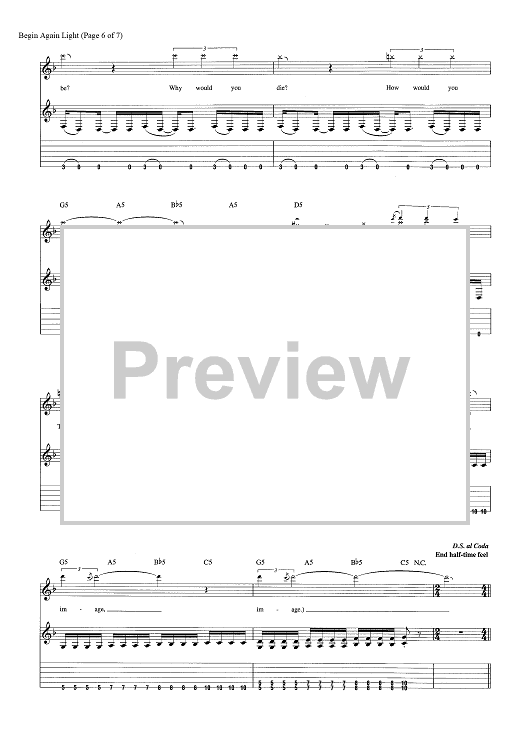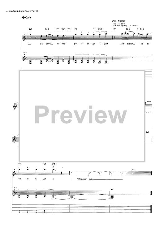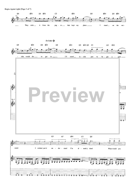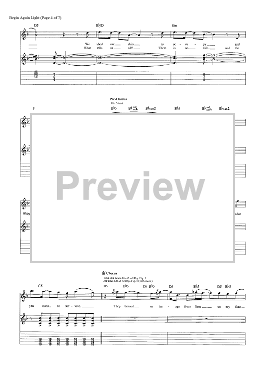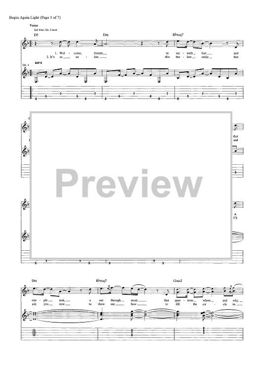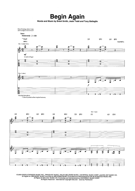 Digital Sheet Music for Begin Again by Tony Battaglia, Shinedown, Brent Smith, Jasin Todd scored for Guitar Tab; id:464239