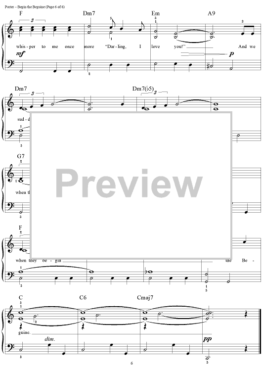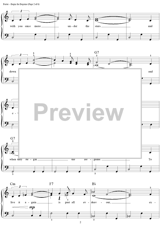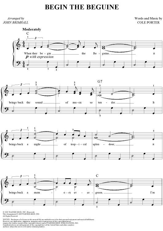 Digital Sheet Music for Begin the Beguine by John Brimhall, Cole Porter scored for Easy Piano; id:287792