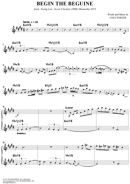 Digital Sheet Music for Begin the Beguine by Eddie Daniels, Cole Porter scored for Bb Clarinet; id:309040