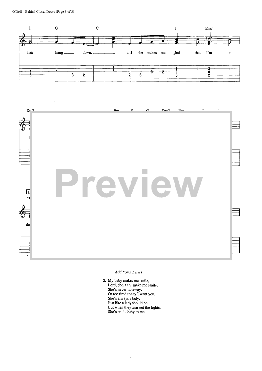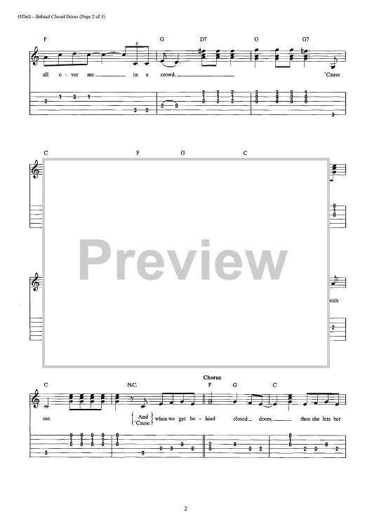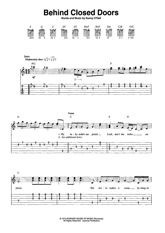 Digital Sheet Music for Behind Closed Doors by Charlie Rich, Kenny O'Dell scored for Easy Guitar Tab/Vocal; id:441334