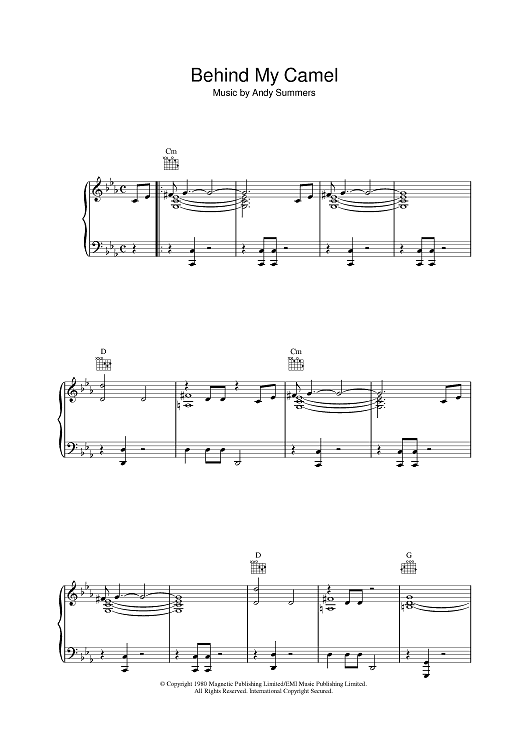 Digital Sheet Music for Behind My Camel by The Police, Andy Summers scored for Piano/Vocal/Chords; id:390299