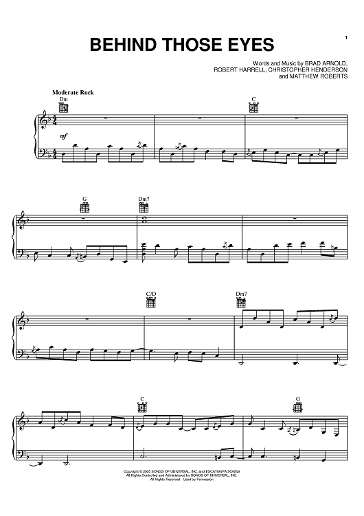 Digital Sheet Music for Behind Those Eyes by 3 Doors Down, Matt Roberts, Brad Arnold, Todd Harrell, Chris Henderson scored for Piano/Vocal/Chords; id:385098