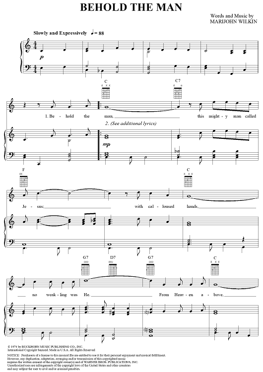 Digital Sheet Music for Behold the Man by Marijohn Wilkin scored for Piano/Vocal/Chords; id:263908