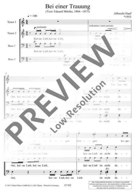 Digital Sheet Music for Bei einer Trauung - Choral Score by Albrecht Haaf scored for Men's Choir (ttbb) A Cappella; id:483322