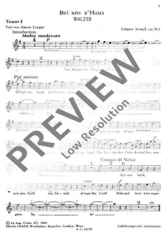 "Bei uns z' Haus - Tenor I" Sheet Music by Johann Strauß (Son)