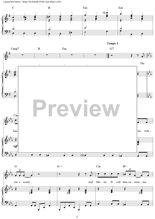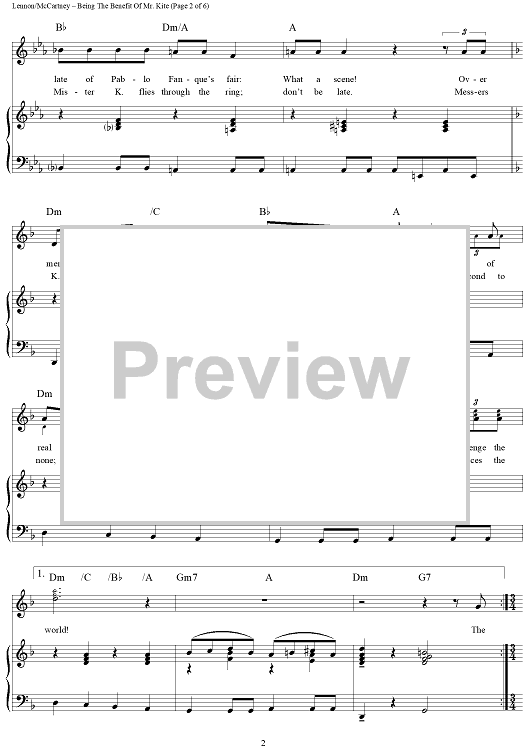Digital Sheet Music for Being for the Benefit of Mr. Kite by Paul McCartney, The Beatles, John Lennon scored for Piano/Vocal/Chords; id:365077